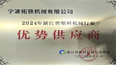 • 喜報!拓鐵再獲浙江省塑機協會“優勢供應商”榮譽 浙江省塑料機械行業協會于2024年11月在深圳召開一屆二次會員代表大會暨二次理事會議,屆時公布了“優勢供應商”評選結果,并對獲獎單位頒發榮譽獎牌和證書。